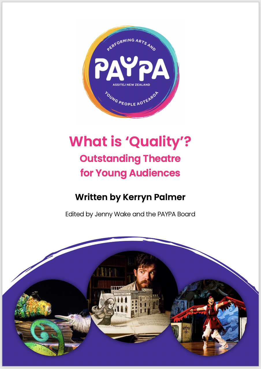 These downloadable resources are intended to inform, provide a framework and support practitioners making work for tamariki. They were commissioned with funding and support from the PAYPA board, Performing Arts Foundation and Creative New Zealand.